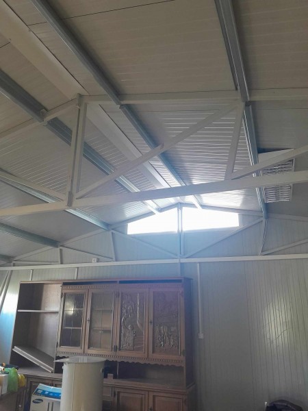 -acélszerkezetes, acéllemez oldalboritású földszintes csarnok, hőszigetelt ablakok,szekcionált kapu