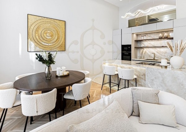 | bővebb leírás: | PÁRATLAN LUXUS A BAZILIKA SZOMSZÉDSÁGÁBAN Az V. kerület szívében, presztízsértékű utcában, 96 nm-es, kétszintes, nappali + 2 hálószobás + 2 fürdőszobás luxuslakás, amely minden részletében a minőséget, az eleganciát és a modern otthonérzetet képviseli. Letisztult design, kimagasló kivitelezés A belsőépítész által megálmodott enteriőr a kortárs stílust és az otthonos harmóniát ötvözi. A 4,65 méteres belmagasság lehetővé tette egy praktikus galériaszint kialakítását, így a 74 nm-es alsószinten tágas amerikai konyhás nappali, hálószoba és zuhanyzós fürdőszoba, míg a 22 nm-es emeleten egy exkluzív, saját fürdős hálószoba kapott helyet. A tágas előszobában beépített szekrény biztosít bőséges tárolókapacitást, míg az emeleten vitrines, ledvilágítással ellátott egyedi beépített bútor fokozza az eleganciát. Prémium anyaghasználat és technikai felszereltség A lakásban minden részlet a luxust szolgálja: Olasz és spanyol designer bútorok Onix burkolatok és Roberto Cavalli tapéták Rejtett klíma- és hangrendszer (Bluetooth-on vezérelhető) Energiahatékony padlófűtés és gázkazán Rejtett szellőztető rendszer, külön vezérelhető hűtő-fűtő egységek Variálható világítás, beépített mennyezeti hangosítás Teljesen gépesített olasz konyha konyhaszigettel és bárpulttal Egyedi díszítőfelületek, antikolt falrészletek, meleg diófa bútorok Hő- és hangszigetelt nyílászárók, gyönyörűen restaurált spalettákkal A szintek között 20 cm vastag vasbeton födém és kőburkolatú lépcső biztosít stabilitást és esztétikumot. A földszinti háló belmagassága: 2,25 m, az emeleti részé: 2,20 m – minden négyzetmétere átgondoltan kialakított. A pasztelltónusok, a textíliák és a világítástechnika exkluzív, mégis otthonos atmoszférát teremtenek. Elhelyezkedés – a belváros legjobb pontján Az elegáns, rendezett társasház első emeletén, utcára néző, napfényes lakás a Bazilika, az Andrássy út és Budapest legjobb éttermei közelében található. Kiváló lokáció mindazok számára, akik a belváros pezsgését szeretnék élvezni kompromisszumok nélkül. Álomotthon. Befektetés. Stílus. Egyaránt ideális választás exkluzív otthonnak vagy értékálló befektetésnek – a design, a technológia és a lokáció tökéletes egységében. Amennyiben felkeltette érdeklődését, keressen bizalommal. ÜDVÖZLETTEL: DR VINCELLÉR ZSUZSA ÜGYVEZETŐ, CEO, LUXURY SPECIALIST +36 30-815-2510 V.ZSUZSA@CITYCARTEL.HU |